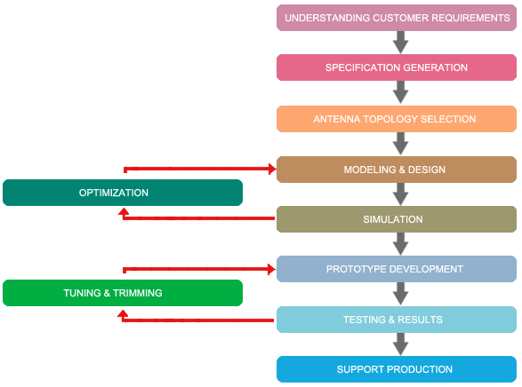 We are ready to partner with you at any stage of your antenna development process. We can be with you right from your initial stages of conceptualization to the production support or any of your intermediate process steps like simulation support or testing and tuning support for your existing antennas.