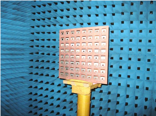 The chamber consists of a standard gain transmitting antenna and a Positioner on which the DUT is mounted. The Positioner is capable of 360 degrees rotation both in the Azimuth and Roll axis. The PNA N series network analyzer is used as the source and receiver for the anechoic chamber and MIDAS Software Suite, a fully automated data acquisition and analysis software is used for far field measurements. The anechoic chamber is validated by the CTIA (Cellular Telecommunication and Internet Association).
