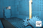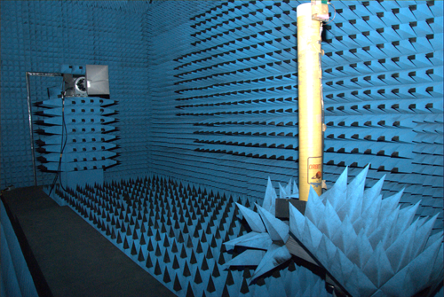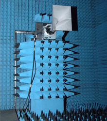 The indoor test range at TTSL is a far field measurement system installed in a completely shielded chamber of size 8 X 4 X 4 meters. Our test chamber is designed for the frequency range from 800 MHz to 18 GHz. The Chamber is fully lined on all surfaces (walls, floor and ceiling) with carbon embedded absorber materials from Emerson & Cuming to simulate a free space environment.